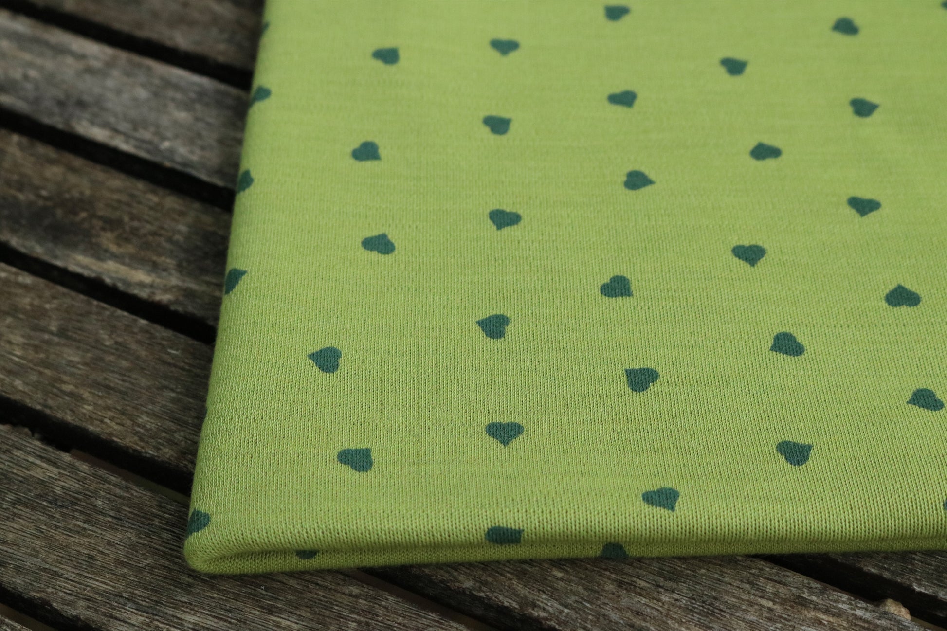 Bio Merino Interlockjersey, Herzen auf Birnengrün