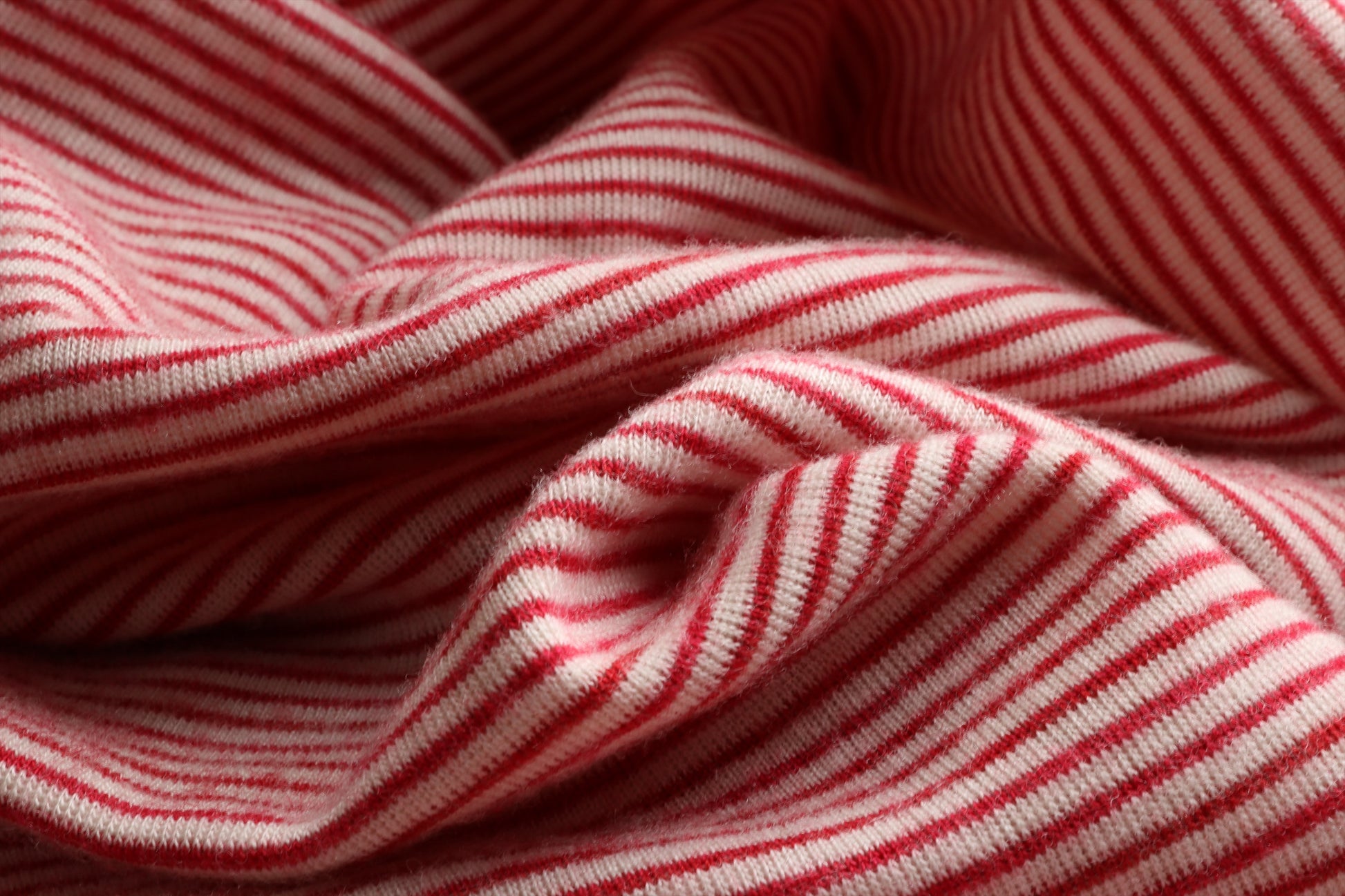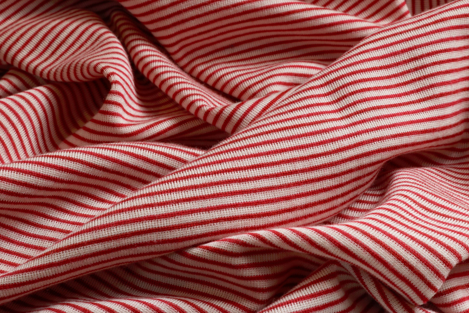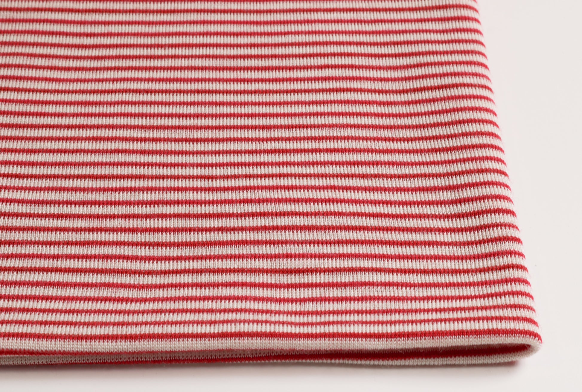 Bio Wolle/Seide Feinrippjersey flauschig, Rot-Naturweiß-Ringel