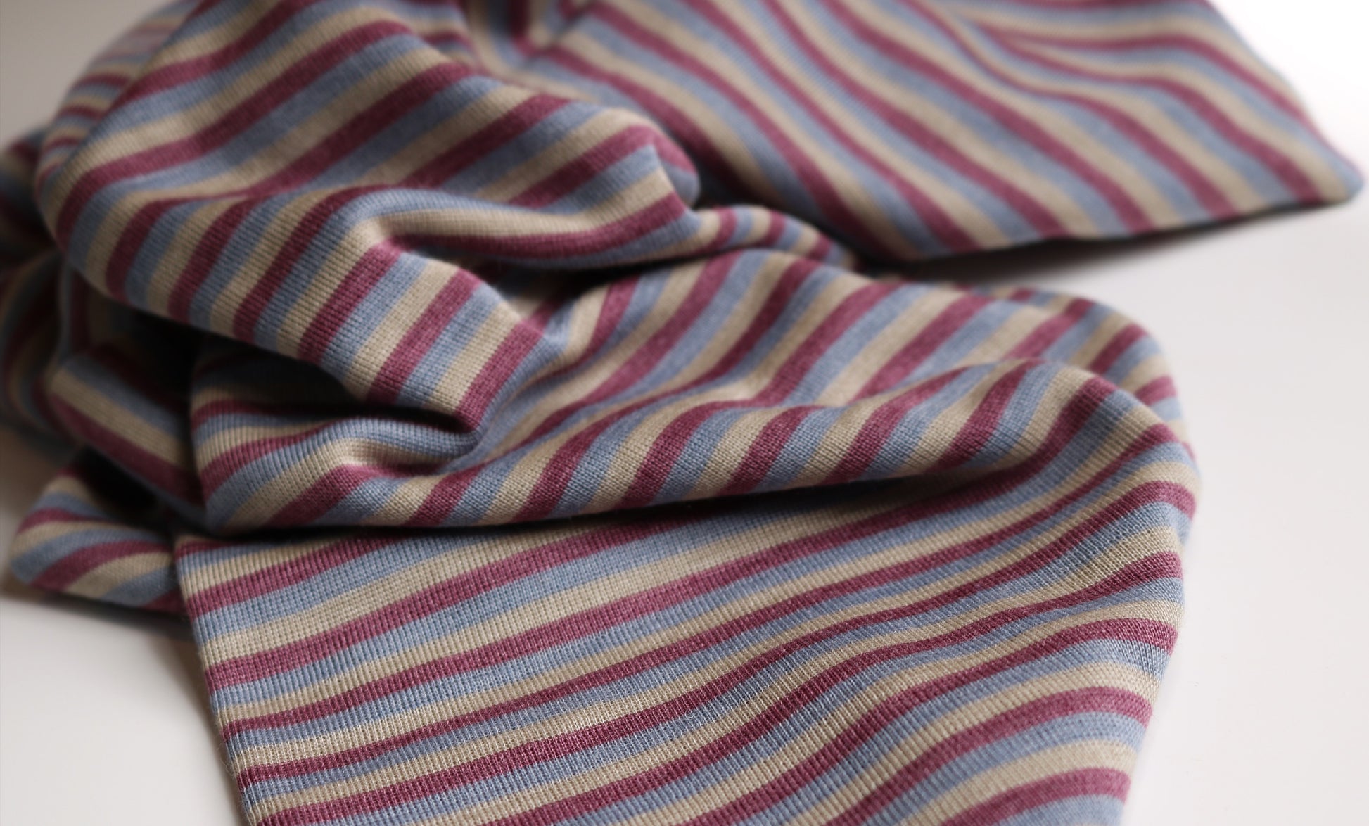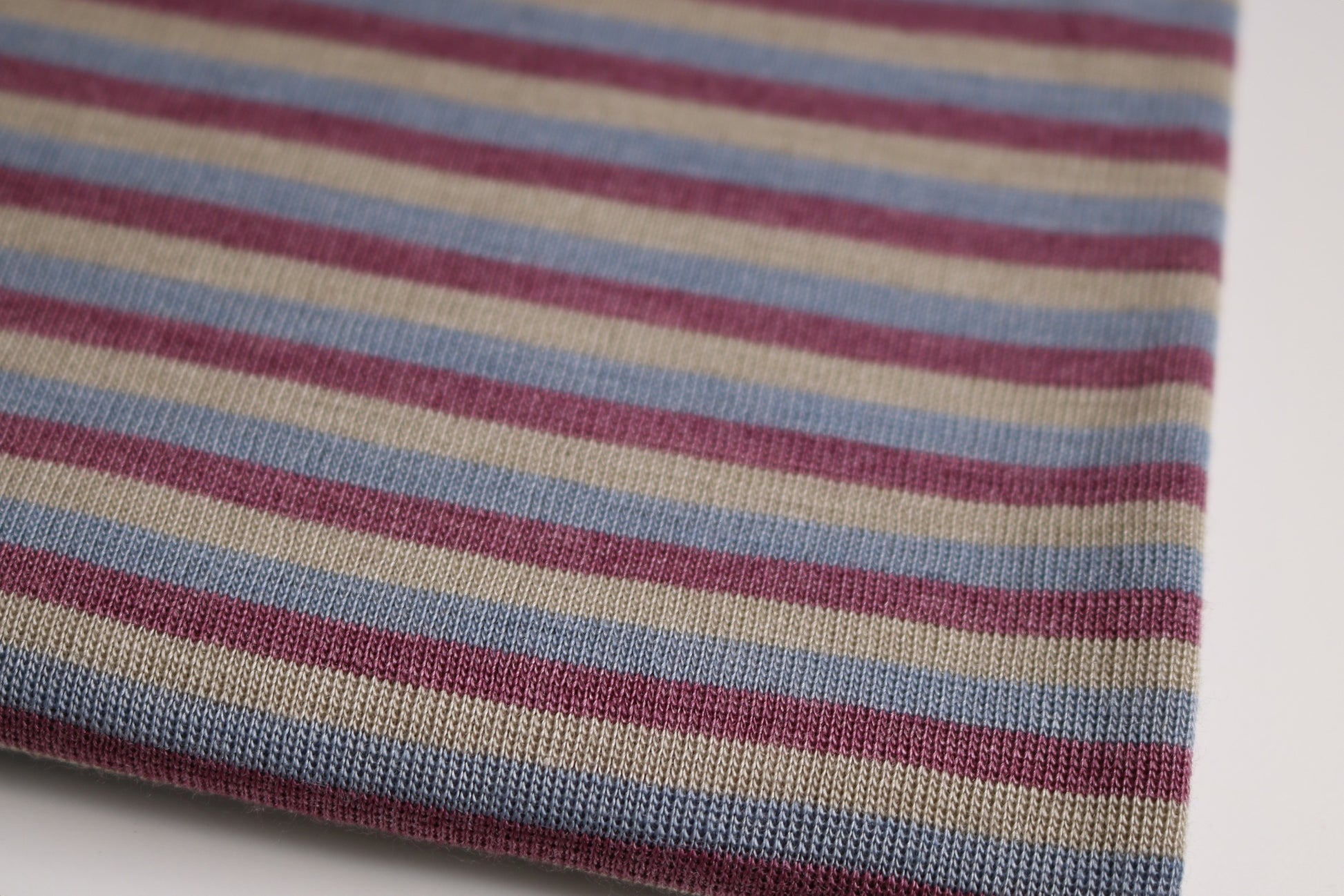 Bio Wolle/Seide Feinrippjersey flauschig, schmale Breite, Trio-Ringel