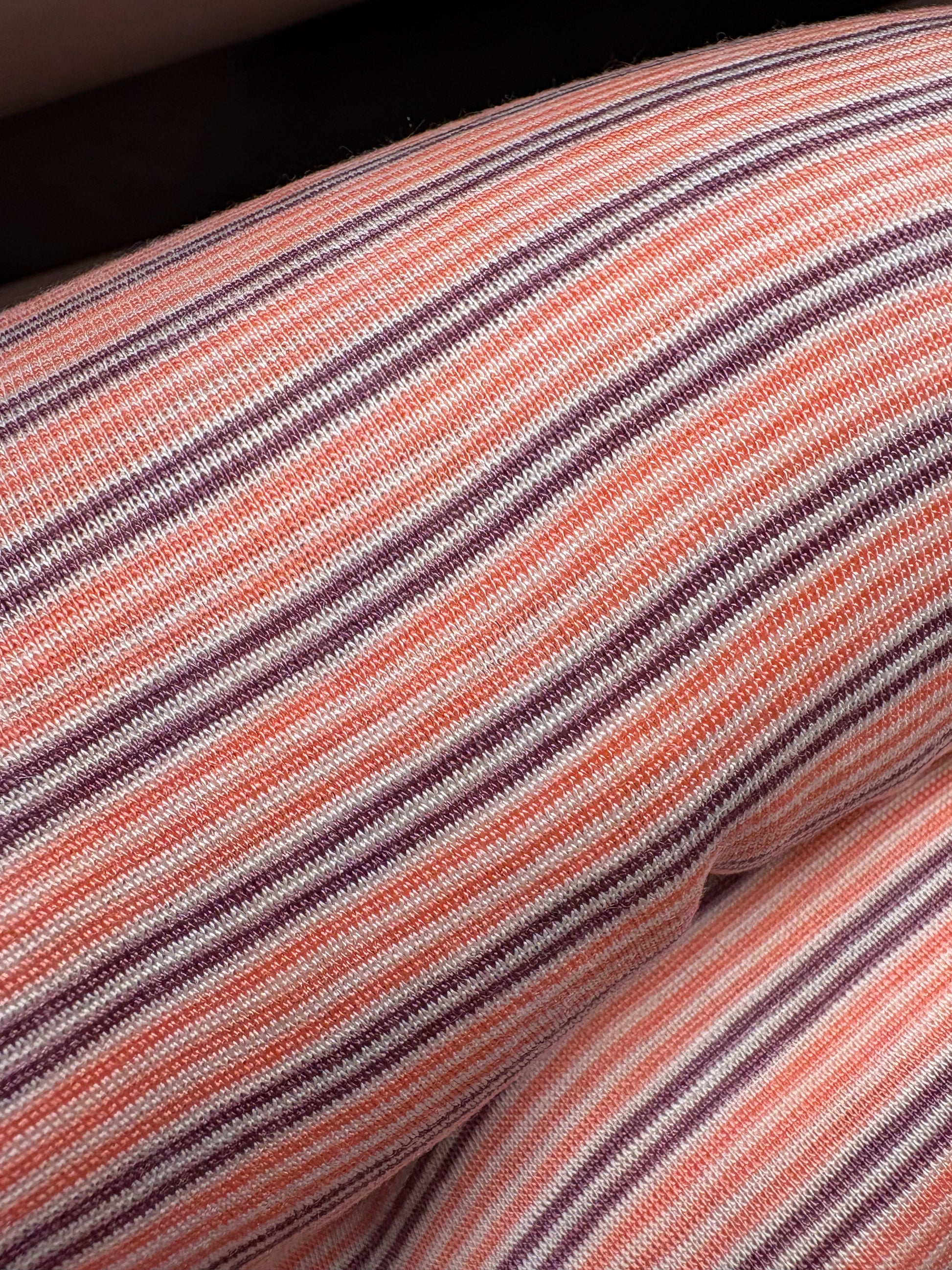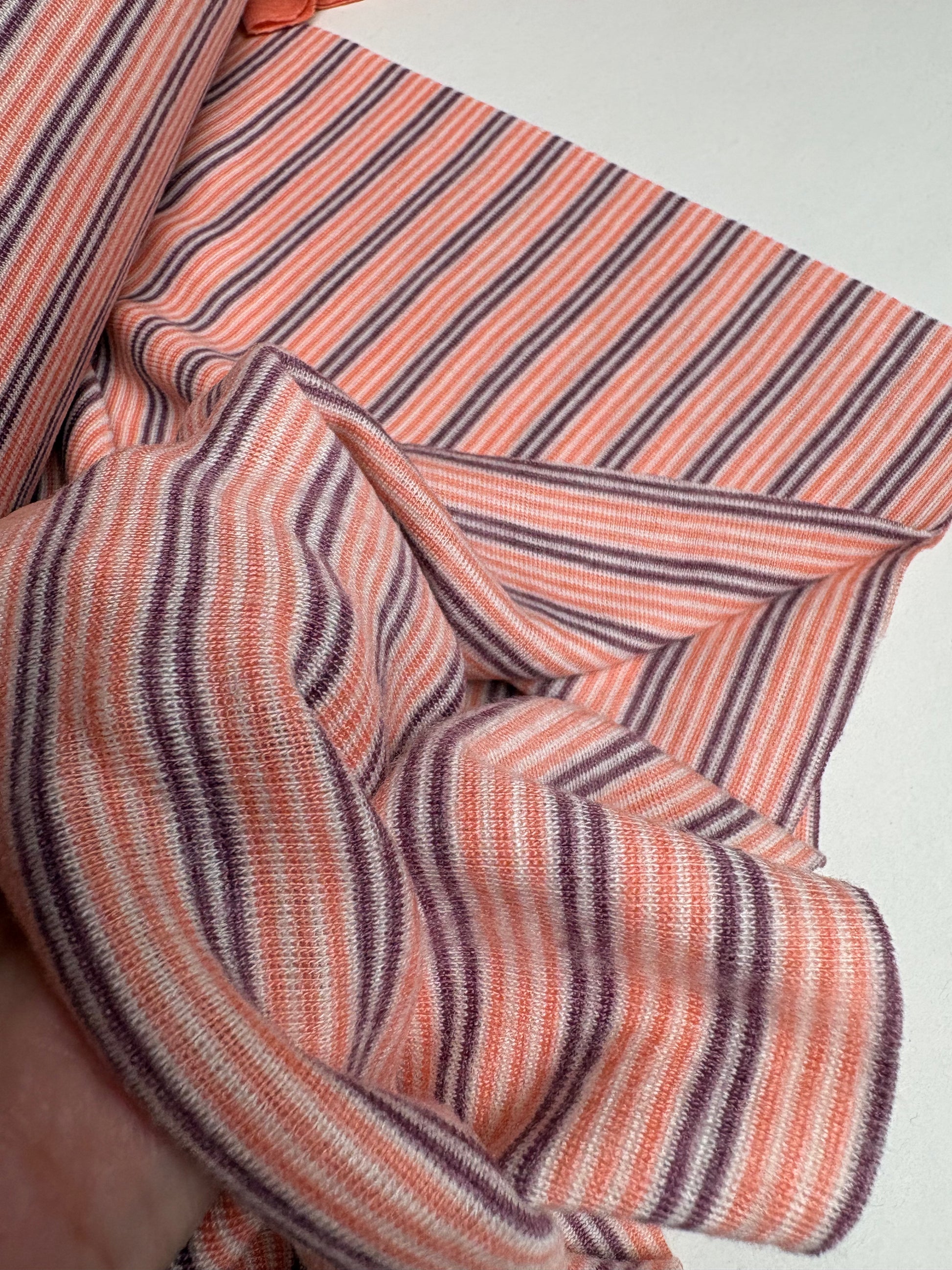 Bio Wolle/Seide Feinrippjersey flauschig, schmale Breite, Waldfrucht-Koralle-Natur-Ringel