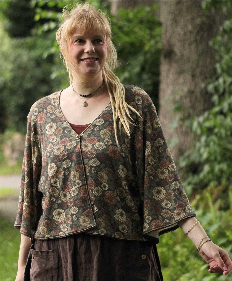 Bio Wolle/Seide Interlockjersey Herbstblumen