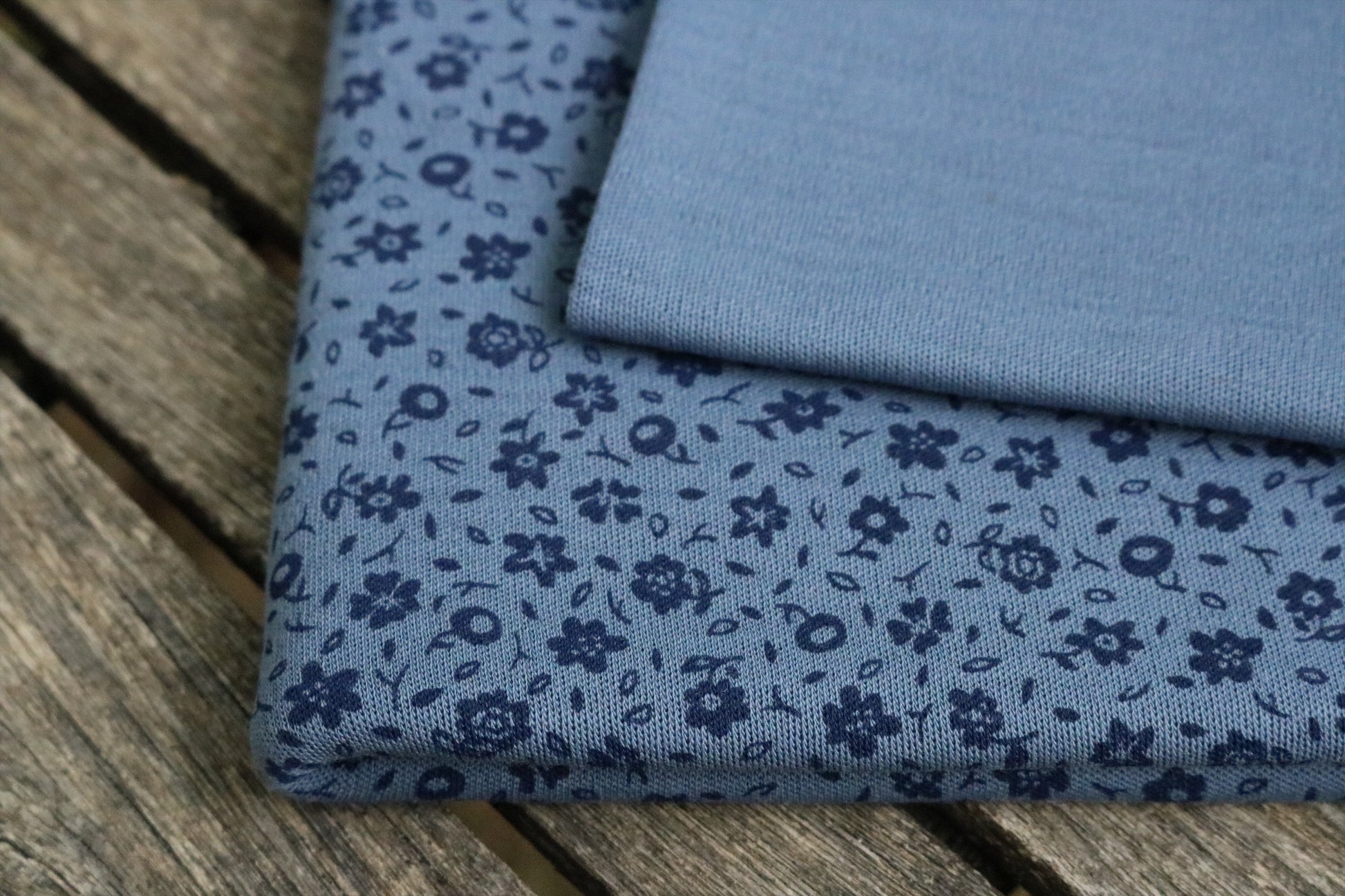 Bio Merino Interlockjersey, Fleurs auf Aschblau